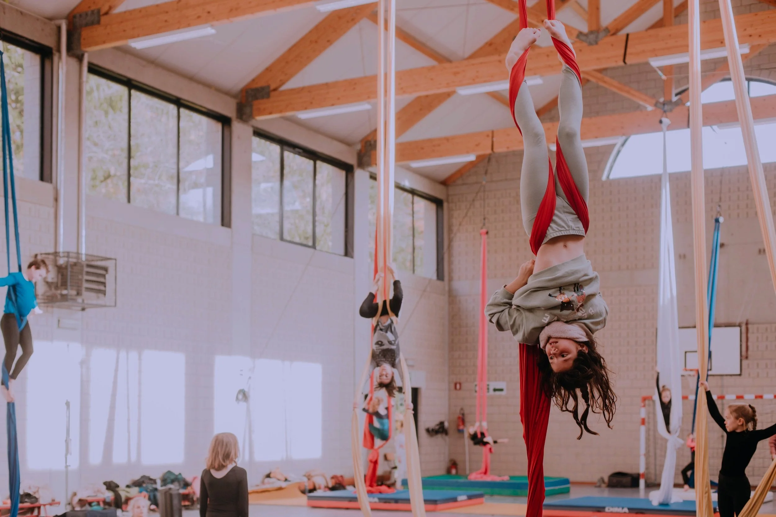 À Mont-Saint-Guibert, la salle de gym de l'Institut Notre Dame des Hayeffes accueille, plusieurs fois par semaine, l'asbl Parenthèse Artistik. Fondée par deux passionnées pour l'art et l'aérien, ce club organise différents stages et ateliers de tissu aérien pour enfants et adultes. Au démarrage, tout a commencé avec trois élèves et un tissu. Aujourd'hui, l'asbl compte une septantaine de membres. Et l'engouement pour cette technique venue du cirque n'est pas près de s'arrêter, comme en atteste cette séquence tournée lors d'un stage au début des vacances d'automne.
